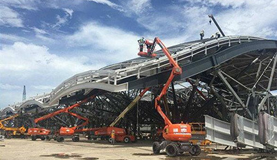 藍牌直臂升降車安裝標識字施工現(xiàn)場